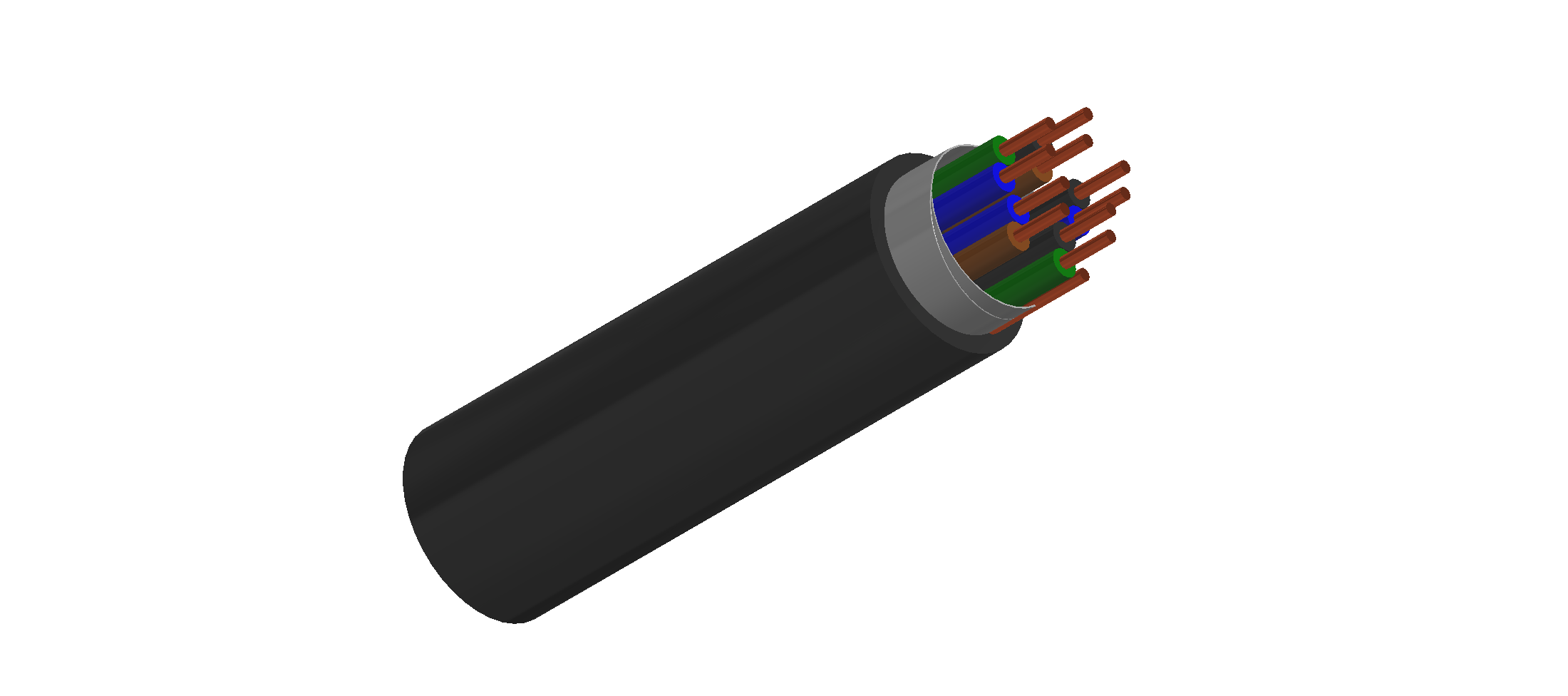Aluminium/polyester tape is applied over the laid up pairs metallic side down in contact with tinned copper drain wire, 0.5mm² |