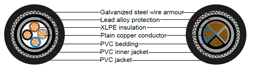 | Armour | Single Core: AWA (Aluminum Wire Armour) Multi Core: GSWA (Galvanized Steel Wire Armour) |
