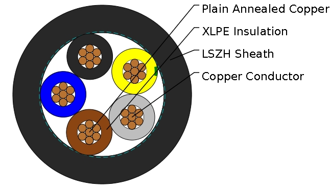 - outer Sheath: Thermoplastic LSZH type LTS 4 according to BS 7655-6.1.