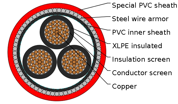 Medium Voltage XLPE Insulated Steel Wire Armored Cable to IEC 60502-2
