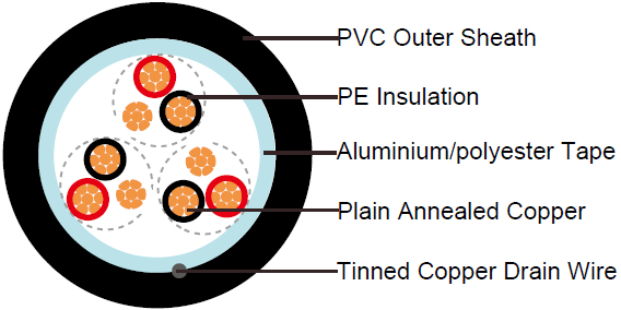 - Overall Screen: Aluminium/polyester tape with tinned copper drain wire, 0.5mm2