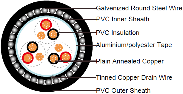- Inner Sheath: Thermoplastic PVC compound