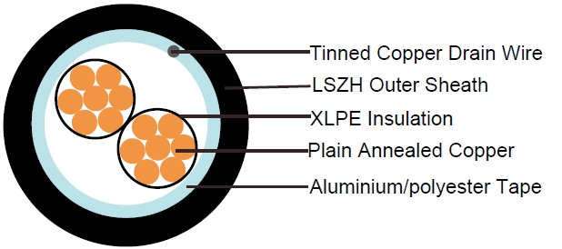 - Overall Screen: Aluminium/polyester tape with tinned copper drain wire, 0.5mm2