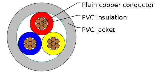 600/1000V,PVC Insulated Cables according to IEC 60502-1 Three core(unarmoured)