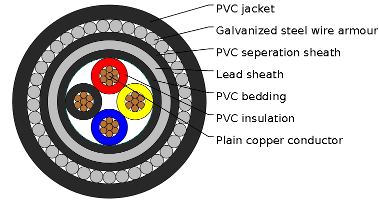 600/1000V,PVC Insulated and Lead Sheathed Cables according to IEC 60502-1 Four core(armoured)