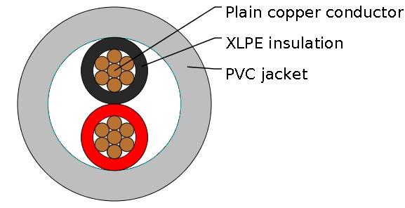 600/1000V,XLPE Insulated Cables according to IEC 60502-1 Two core(unarmoured)