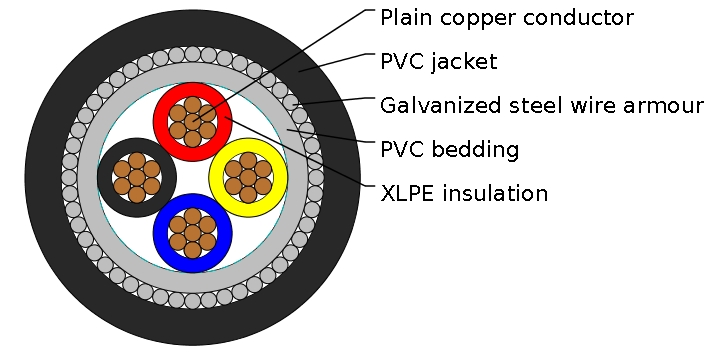 600/1000V,XLPE Insulated Cables according to IEC 60502-1 Four core(armoured)