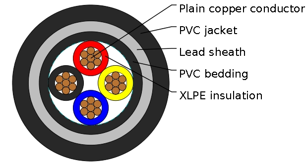 600/1000V,XLPE Insulated and Lead Sheathed Cables according to IEC 60502-1 Four core(unarmoured)
