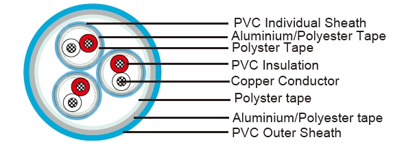 PVC (Flame retardant, sunlight, mineral oil and hydrocarton resistant) |