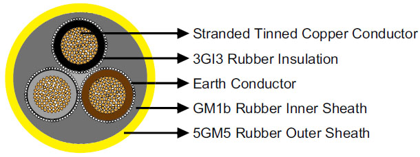 These cables are used for connection of mobile equipment and machines under very high mechanical loads in dry and damp areas, outdoors and in explosion hazard areas, particularly in mining and at quarries and building sites.