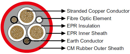 (N)TSCGEWOEU Medium Voltage Fixed Installation Cable With Fiber Optics