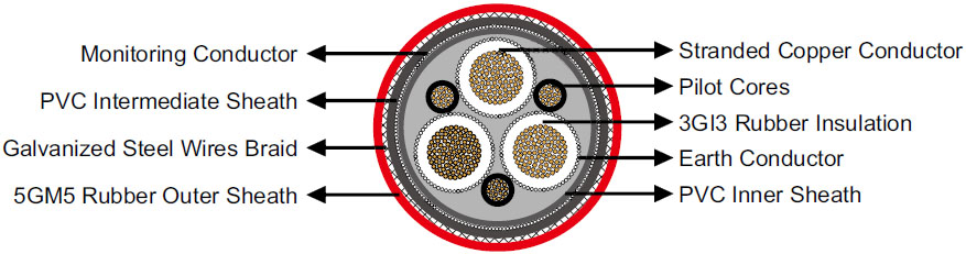 These cables are used for the connection of mobile operating equipment, in mines and underground excavations with hazardous environments, in stationary operation, e.g. high-voltage transformers in mining and tunnelling.