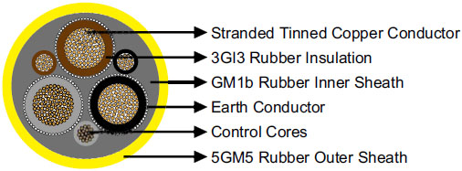 These cables are designed for the connection of mobile equipment and machines under very high mechanical loads in dry and damp areas, outdoors and in explosion hazard areas, particularly in mining and industry, quarries and building sites.