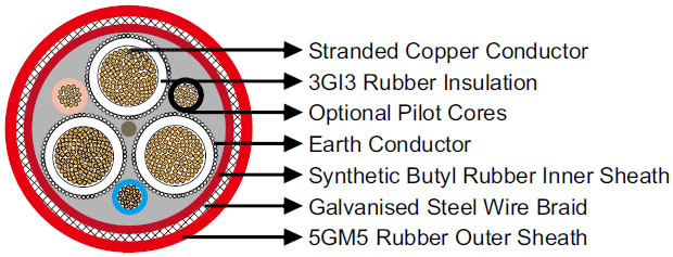 | Pilot Cores (optional) | Copper conductor with EPR insulation. |