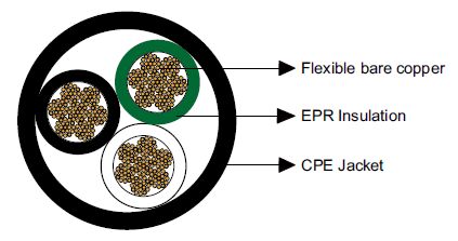 | Jacket | Heavy-duty Chlorinated Polyethylene (CPE), black. (Cables having a nominal outside diameter of more than 2.0 inches require extra-heavy-duty jackets.) |