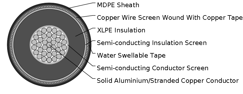 Extruded semi-conducting XLPE (Cross-Linked Polyethylene), solidly bonded and cold strippable.