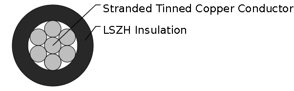 Stranded tinned copper conductors to IEC 60228 class 2 or 5.
