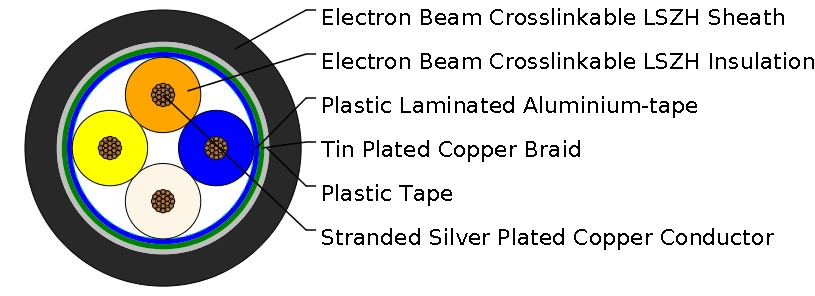 Stranded tin platedcopper conductor (for 0.5mm² cables) or stranded silver plated copper conductor (for 22AWG cables) according to IEC 60228 class 5.
