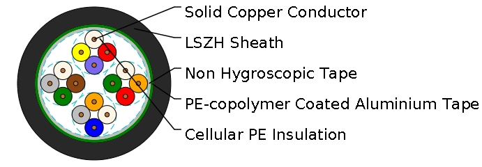 LSZH sheath. (VDE Code: A-02Y(L)HY)