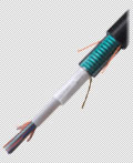 This cable offers the highest packing density, since all the fibers are laid out in rows, typically of 12 fibers, and laid on top of each other. This way 144 fibers only has a cross section of about 1/4 inch or 6 mm! Some cable designs use a "slotted core" with up to 6 of these 144 fiber ribbon assemblies for 864 fibers in one cable! Since it's outside plant cable, it's gel-filled for water blocking.