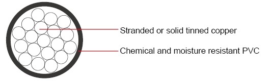 These chemical and moisture resistant PVC insulated single-core MIL-W-76B type LW thin wall cables are used for internal wiring of electrical and electronic equipment. It is also resistant to water, oil, acids, solvents and fungus.Construction Details