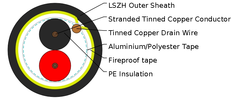 The cables are designed for RS485 data connections. This cable combines low capacitance insulation with one of the highest levels of screening to provide high speed, interference free, data transmission where continued functionality is required during a fire situation.