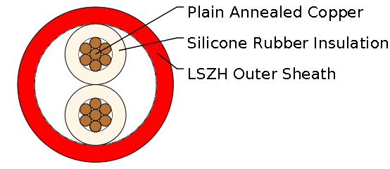Insulation: Fire resistant silicone rubber compound type EI2 as per BS 7655-1.1.