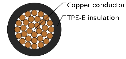This TPE-E insulated single-core cable is used for cable harnesses.