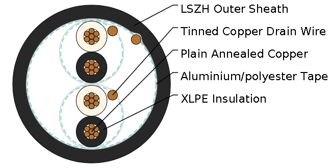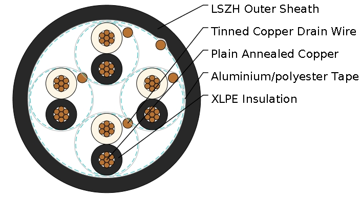 Insulation: Extruded XLPE compound according to EN 50290-2-29. LSZH, PE, PP compound can be