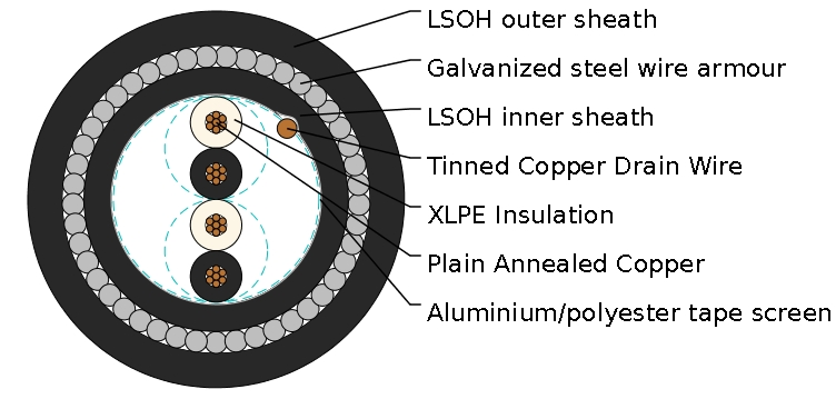 The LSZH sheathed cables are generally used for indoor installation and suitable for wet and damp areas. The galvanized steel wire armour provides excellent protection. Generally, the cables are used within industrial process manufacturing plants for communication, data and voice transmission signals and services. Also used for the interconnection of electrical equipment and instruments, the LSZH sheath can reduce toxic smoke and fume emission.STANDARDS