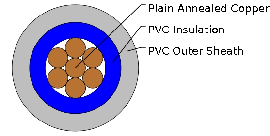 Annealed copper conductor, class 1 (1.0mm^2 to 2.5mm^2) or class 2 (4mm^2 to 35mm^2) according to BS EN 60228. |