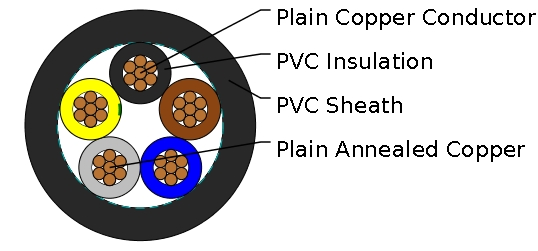 600/1000V PVC Insulated, PVC Sheathed, Unarmoured Power Cables (2-5 Cores & Multicore)