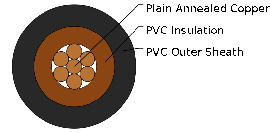 600/1000V PVC Insulated, PVC Sheathed, Unarmoured Power Cables to IEC 60502 (Single Core)
