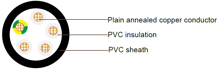 PVC Insulated, PVC Sheathed Multi-core+E Control Cables, 0.6/1kV
