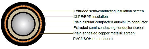 3.8/6.6kV Single Core Screened & PVC Sheathed (Al Conductor)