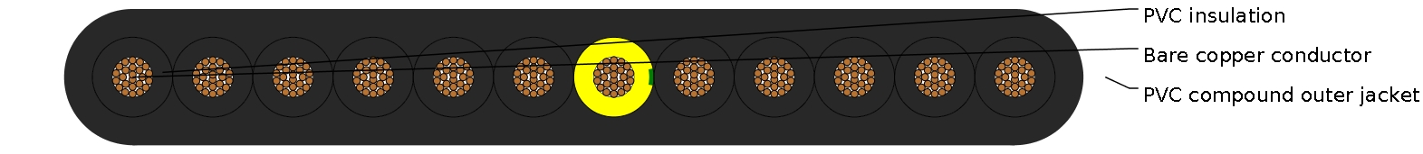 - PVC compound outer jacket TM2 to VDE 0207 part 5