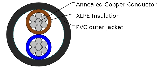 These cables for energy distribution are suitable for all types of low voltage industrial-type connection, in urban grids, building installations, etc. Particularly suited in cases of high operating temperature and when high resistance to solar radiation and atmospheric agents is required. Good resistance to low temperature and chemical agents. Can be used without additional mechanical protection in the open air, fixed to walls or in raceways, inside walkways, and in empty in Cable Constructions in general. Can be laid underground with mechanical protection constructed from slabs, tiles, or bricks. They are not recommend to lay this cable in ground flooded for more than two months per year. With appropriate mechanical protection it can be use in areas subject to risk of explosion, but in this case the permitted current load is reduced by 15%.