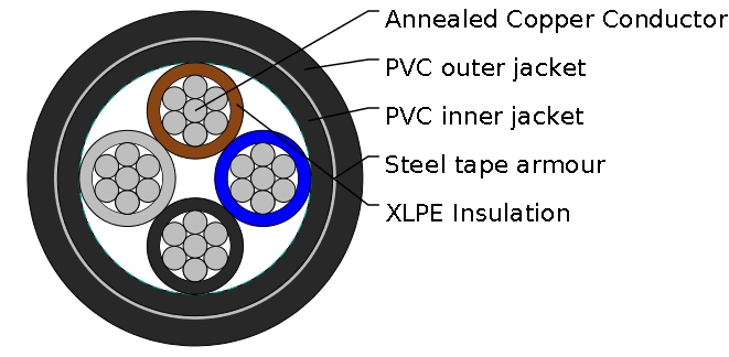 - Two steel tapes helically wraped armour(only for multicore cables)