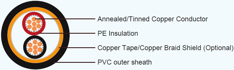 | Shield (optional) | Copper tape (S) or copper wire braid (SB) |