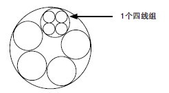 2对电缆:芯线绞合为一个四线组: