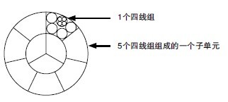 四线组中的单根芯线用黑色环标作为标记。