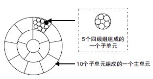 1个子单元的四线组按基色序列进行计数。对于5个四线组以上的电缆, 主单元和子单元必须由内向外从maker开始连续计数。