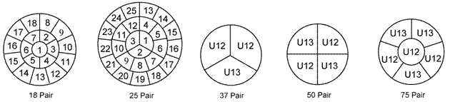 标准非屏蔽填充/非填充型电话电缆中,对、单元、组和特大单元有多种可能的组成方式。