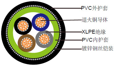 300/500V XLPE绝缘, 钢丝铠装,PVC护套电力缆 (2-4芯)
