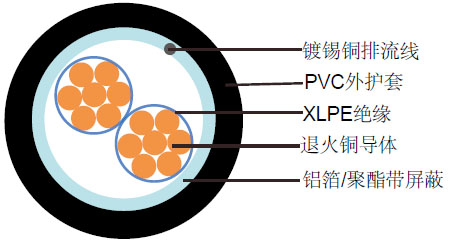 铝箔/聚酯带带0.5mm² 屏蔽(7/0.3mm)镀锡铜丝排流线 |