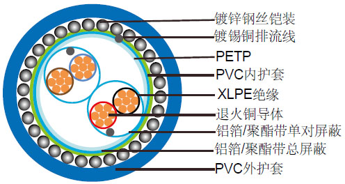PVC阻燃单对屏蔽&总屏蔽,铠装仪表缆(多对)