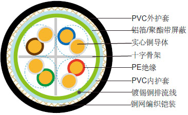 此款线缆为铝箔总屏蔽带排流线。 |
