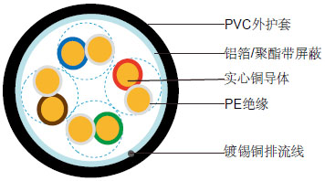 此款线缆为双层铝箔总屏蔽带排流线&铜网编织屏蔽。 |