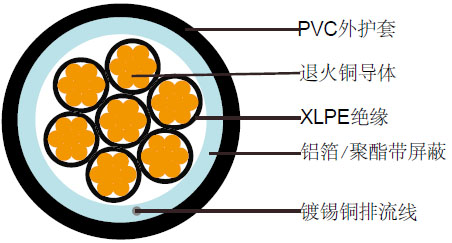 300/500V XLPE绝缘, PVC护套, 屏蔽电力缆 (多芯)