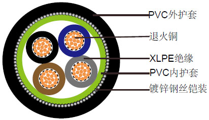 600/1000V XLPE绝缘PVC护套钢丝铠装电力缆主要应用于发电站、公共交通客运系统、机场、石化工厂、酒店、医院、高层建筑等的配线电缆。